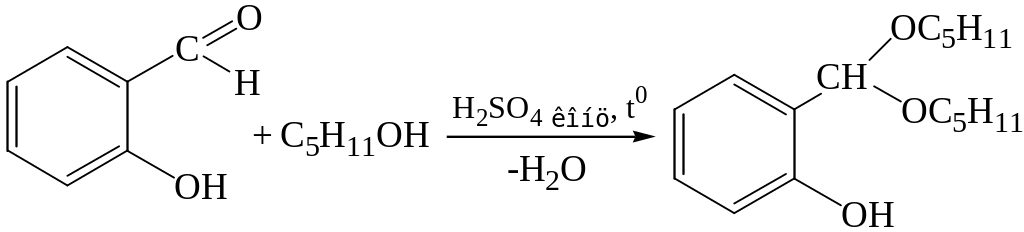 реакция Комаровского - взаимодействие с ароматическими альдегидами - салициловым, n-диметиламинобензальдегидом и др. (реакция отличия высших спиртов (пропанол, бутанол, пентанол) от низших (метанол,этанол).