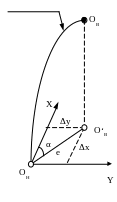 – с помощью теодолита. Прибором, установленным на одной из осей, визируют верхнюю точку здания и проецируют её на уровень земли, где металлической линейкой измеряют отклонение проекции от угла; по найденным Δx и Δy определяют e и α.