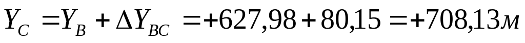 Координаты точки С получаем алгебраическим сложением координат точки В с приращением по линии ВС, действуя по схеме