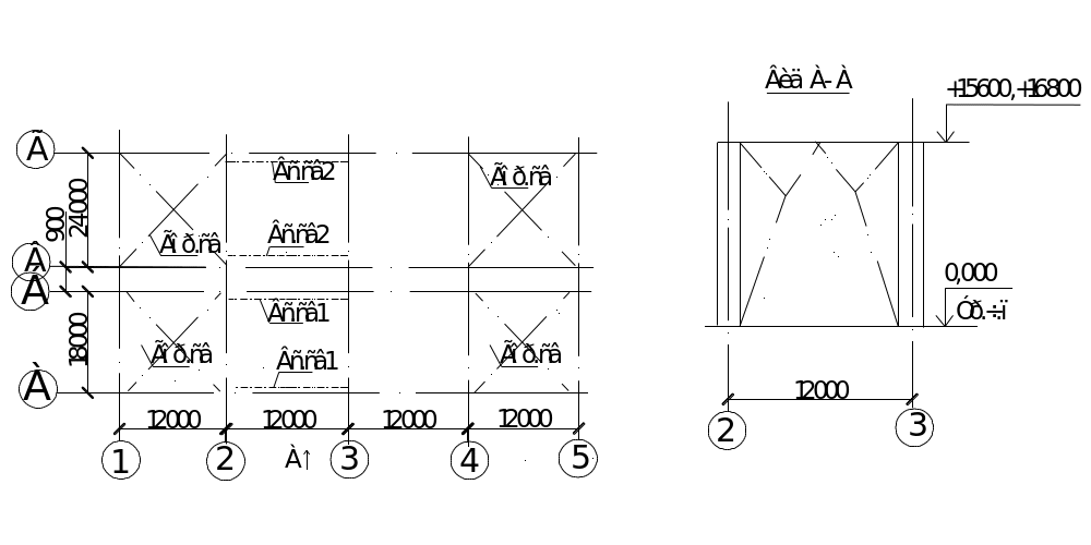В проектируемом здании для достижения пространственной жёсткости и устойчивости здания используются вертикальные и горизонтальные связи. Горизонтальные связи выполнены в виде ферм, и располагаются в плоскости покрытия. Вертикальные связи устанавливаются посередине здания в каждом ряду колонн в вертикальном направлении. При шаге 12м используются портальные связи (рис.12). Дополнительная пространственная жесткость обеспечивается в горизонтальном направлении подкрановыми балками и плитами покрытия.