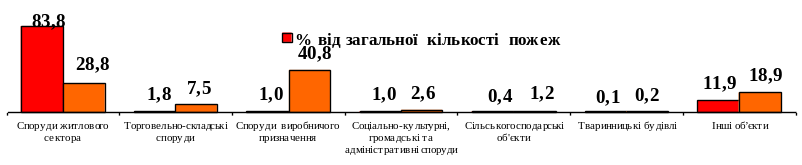 Як і протягом останніх років, найбільша кількість загиблих реєструється в житловому секторі – 3849 осіб або 96,5% від загальної кількості загиблих унаслідок пожеж, з яких 3267 осіб загинуло безпосередньо в житлових будинках
