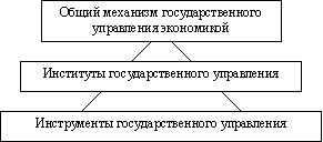 Как отмечено в предыдущем разделе, инструменты управления есть конкретизация норм и правил, образующих институты управления. В рамках каждого института государственного управления экономикой концентрируется совокупность однородных по способу, характеру, виду управляющих воздействий, объединяемых также областью действия. В то же время одни и те же по виду действия, инструменты управления (государственного и негосударственного) входят в состав разных институтов управления. Место инструментов в общей системе государственного управления экономикой иллюстрируется схемой на рис. 2.1.