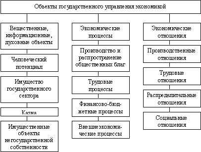 Перечисленные в самом общем виде экономические процессы, рассматриваемые в виде объектов государственного управления, в зависимости от их вида и содержания, установленных законами страны и международными соглашениями норм и правил могут быть подвержены прямому и косвенному государственному влиянию, непосредственному распорядительному воздействию и опосредованному рыночными механизмами государственному регулированию.