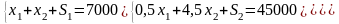 3) условие неотрицательности: x1≥ 0, x2 ≥ 0 и S1 ≥ 0, S2 ≥ 0, S3 ≥ 0.