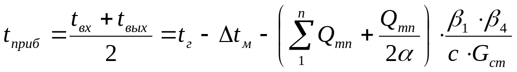 Средняя температура воды в нагревательном приборе однотрубной системы отопления в общем случае определяется выражением:
