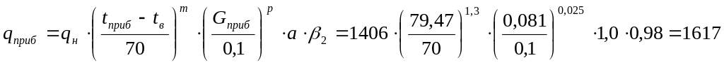 По табл.2 приложения 9 при питании прибора по схеме сверху-вниз m=1,3. Вычисляем расход воды через прибор: