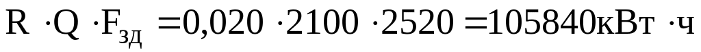 Q - продолжительность работы освещения в течении года (2100 ч);