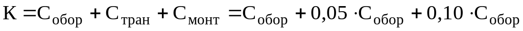 где К – капитальные вложения (с учетом транспортировки и монтажа), р;