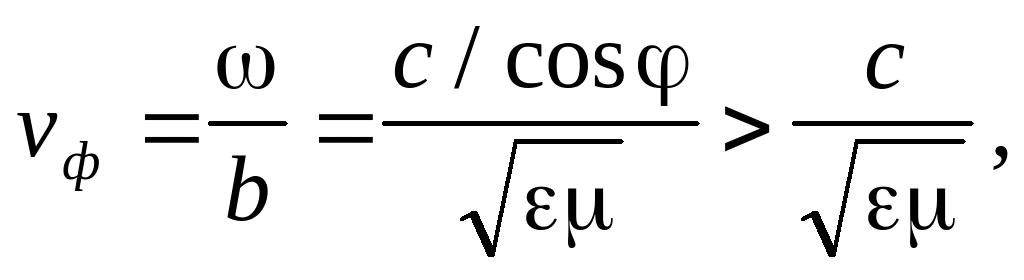 Фазовая постоянная обеих волн b=cos<. Следовательно, фазовая скорость больше, чем в однородной линии: