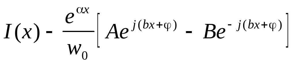 Найденные решения (3,4) показывают, что в линии распространяются волны противоположных направлений, причем амплитуда напряжения обеих волн при >0 убывает к началу линии, а амплитуда тока растет в такой же степени (при <0 картина обратная). Происходит трансформация напряжения и тока без изменения передаваемой мощности.