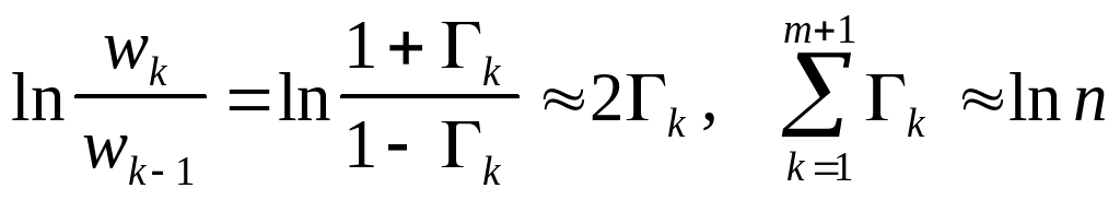 Допустим, что wk и wk–1 мало отличаются, тогда |k|<<1, а |k|2 имеет второй порядок малости, поэтому приближенно можно считать |Sk|=1, а также пренебречь вторичными отражениями от ступенек. В этом приближении общий коэффициент отражения равен сумме местных коэффициентов отражения (пересчитанных ко входу с учетом фазовых задержек):