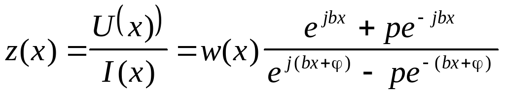 Между напряжением и током падающей волны имеется сдвиг фаз , зависящий от , то же можно сказать и об отраженной волне.