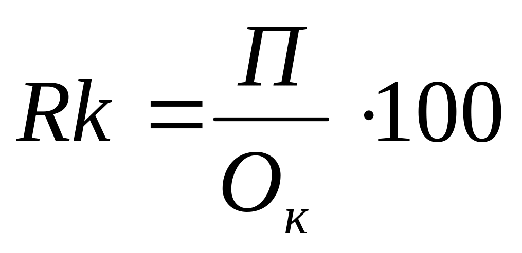 Рентабельность оборотного капитала, оборотных производственных средств Rk.– это отношение прибыли предприятия к объему оборотного капитала, оборотных производственных средств Ок.:
