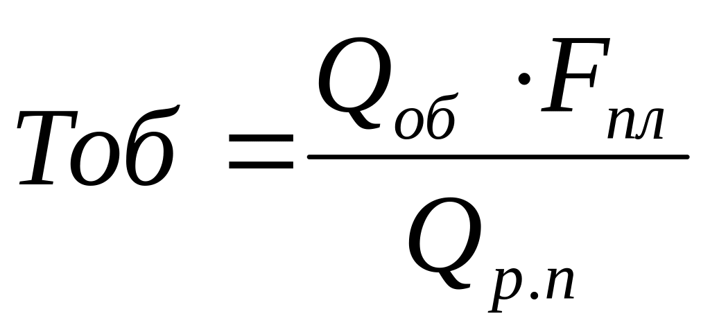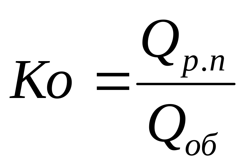 Коэффициент оборачиваемости Коб показывает число кругооборотов, которое совершают оборотные средства за определенный период (квартал, год) либо объем реализованной продукции Qp.п. с одного рубля оборотных средств, т.е. их отдачу: