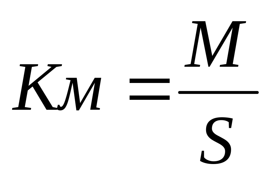 Коэффициент материалоемкости продукции Км. показывает долю затрат на материалы М в себестоимости продукции S: