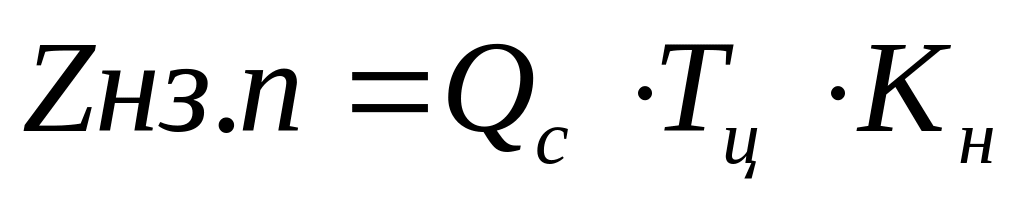 Норматив оборотных средств в незавершенном производстве Zнз.п., руб. рассчитывают по формуле: