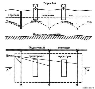 В некоторых случаях требуемое понижение уровня грунтовых вод может быть достигнуто системой общего дренирования территории (головным и систематическим дренажом).