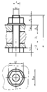В табл.4.2 приведено конструктивні розміри з’єднання болтом, а на рис.4.16 – спрощене зображення з’єднання болтом головного вигляду і зверху. Стандартні довжини болтів представлені в табл.4.3.
