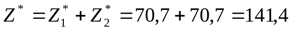 Общие затраты в единицу времени Z - это сумма затрат на хранение в единицу времени Z1 и затрат на организацию заказов в единицу времени Z2: Z=Z1+Z2.