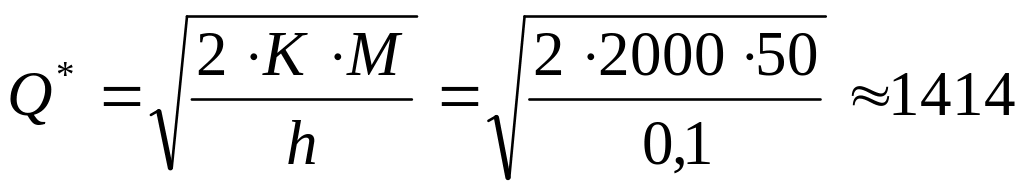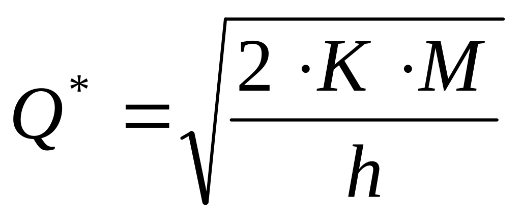 h - стоимость хранения на складе единицы запаса в единицу времени. (денежных ед./ед. времени);