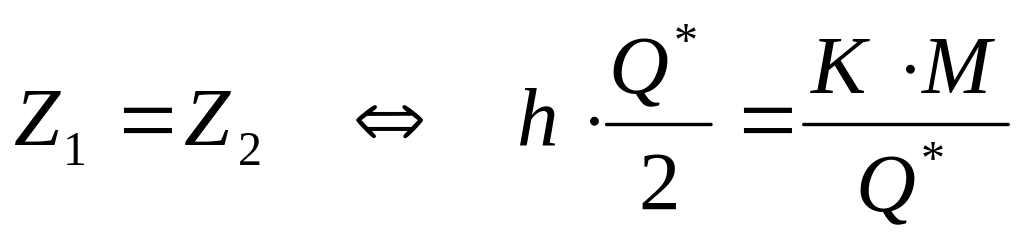 Оптимальный объем партии товара соответствует точке, в которой равны затраты на хранение и заказ в единицу времени. Таким образом, его можно найти из соотношения: