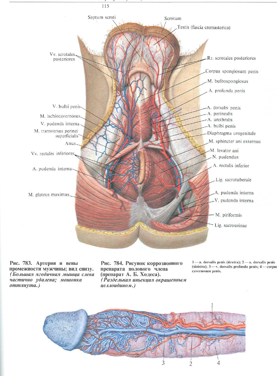4. Нижняя яrодичная артерия, а. glutea inferior (см. рис. 782, 791—793), в виде довольно крупной ветви от ходит от переднеrо ствола внутрен ней подвздошной артерии, спускается по передней поверхности rрушевид ной мышцы и крестцовоrо сплетения и выходит из полости таза через под- rрушевидное отверстие вместе с внут ренней половой артерией.