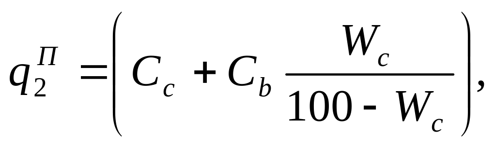где Сс — массовая теплоемкость сухого сырья, кДж/кг-°С; Св — массовая теплоемкость влаги сырья, кДж/кг °С; wc — начальная влажность сырья, %; tc — начальная температура сырья.