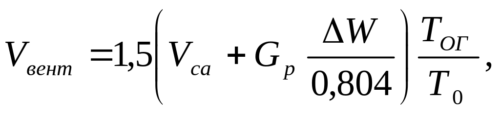 При определении необходимой производительности мельничного вентилятора Уцент., м3/ч, при tor следует учитывать расходы сушильного агента и выделившихся из материала водяных паров AWBH принимать запас около 50%. Производительность мельничного вентилятора рассчитывают по уравнению: