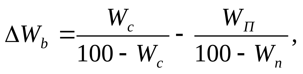 где Wc, Wn и W0 — соответственно, начальная, конечная и гигроскопическая влажность материала, %.