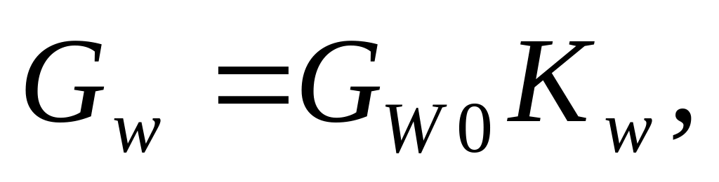 где Gw — производительность печи при фактической влажности сырьевого шлама; Gw — производительность печи по паспорту при влажности сырьевого шлама W0(36 или 38%); Kw — коэффициент, учитывающий влияние изменения влажности шлама на производительность печи — приближенно определяется по графику (см. рис. 6.36).
