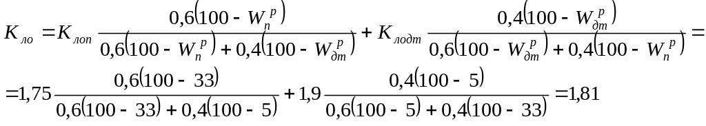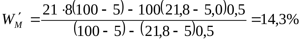 здесь Wmax — максимальная влажность топлива — 25,8%. Средняя влажность угля в барабане Wcp: