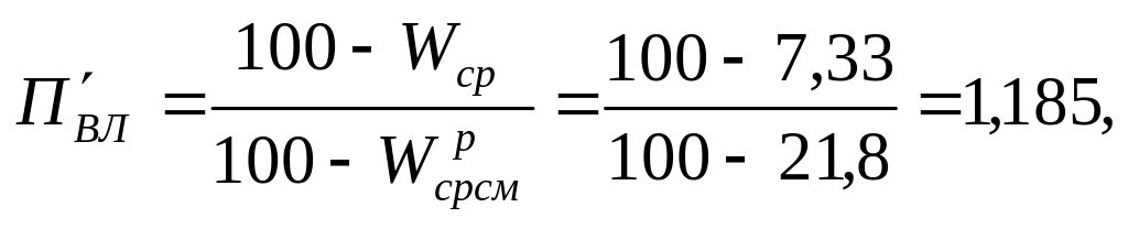 где Пвд — поправочный коэффициент, учитывающий влияние влажности угля на размолоспособность.
