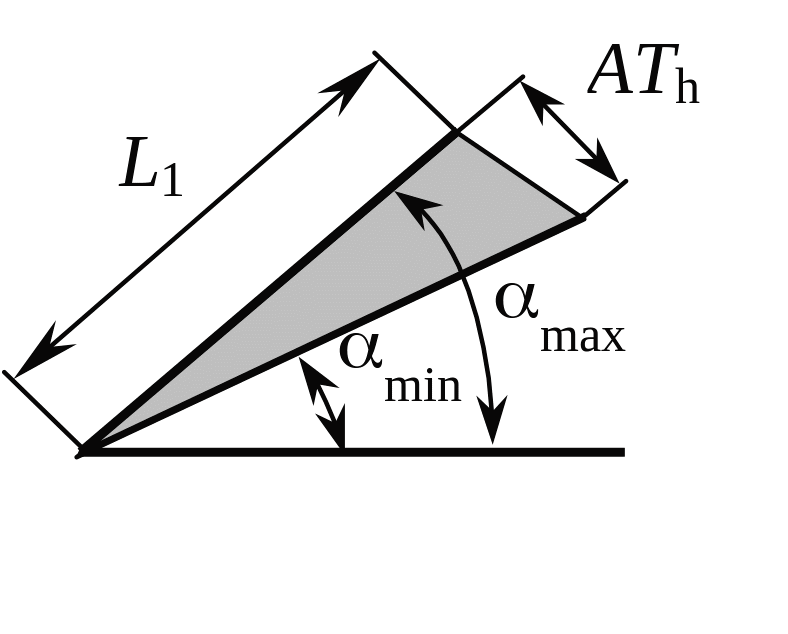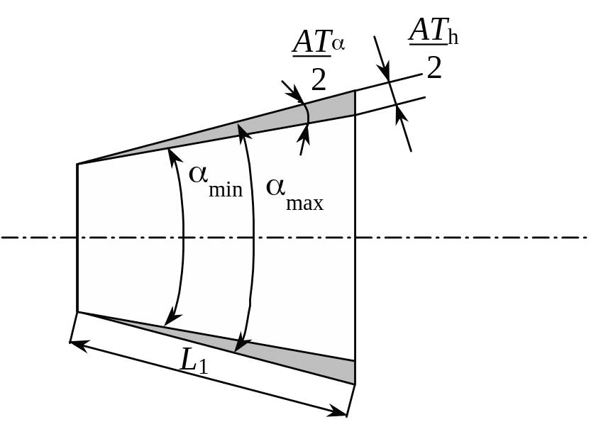 допуск угла АТh – длина противолежащего отрезка на перпендикуляре к стороне угла на расстоянии L1 от вершины.