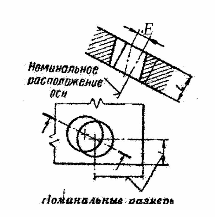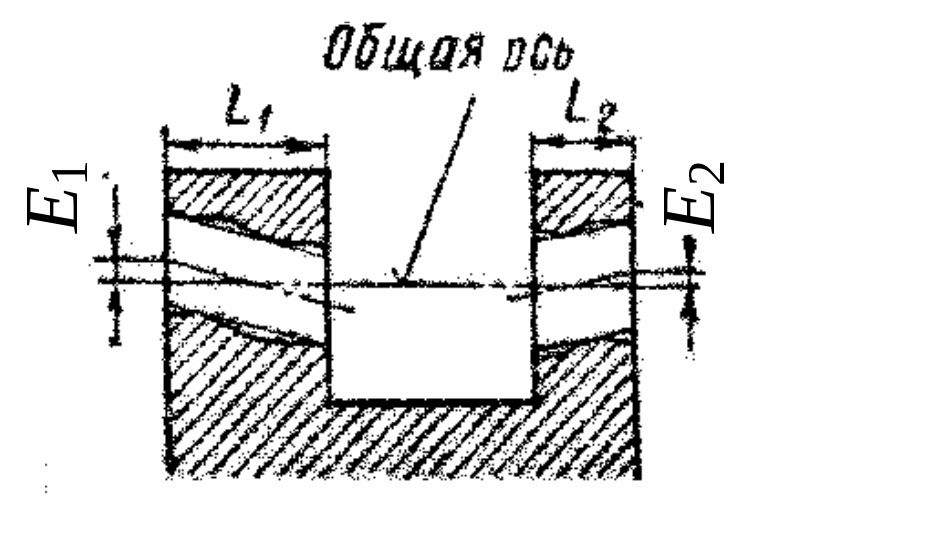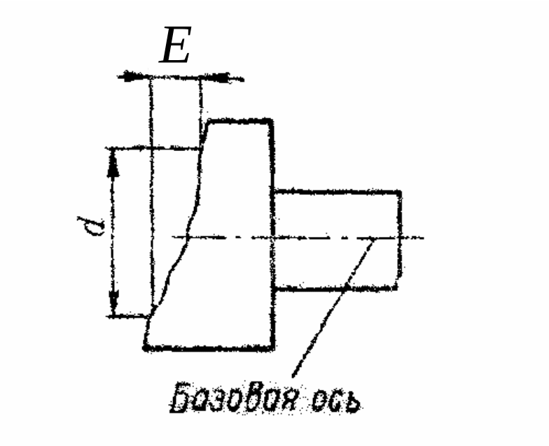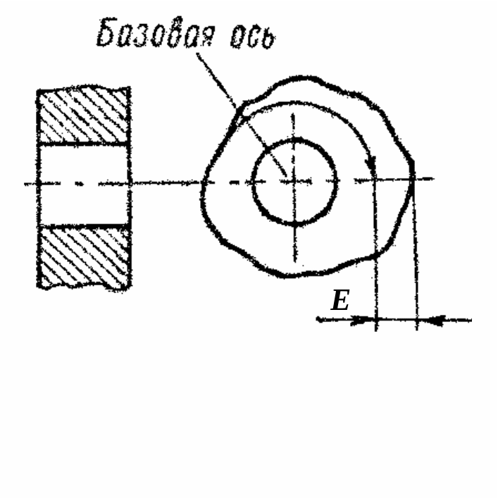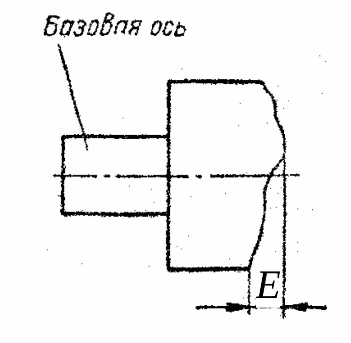 4) отклонение от соосности: а) относительно общей оси наибольшее расстояние (Е1, Е2, …) между осью рассматриваемой поверхности вращения и общей осью двух или нескольких поверхностей вращения на длине нормируемого участка; б) относительно оси базовой поверхности
