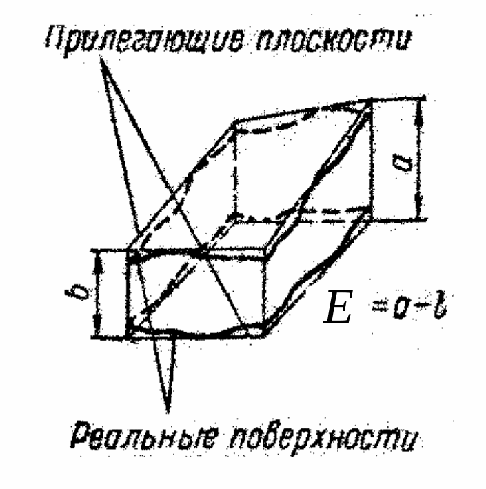 отклонение от плоскостности наибольшее расстояние Е от точек реальной поверхности до прилегающей плоскости в пределах нормируемого участка.