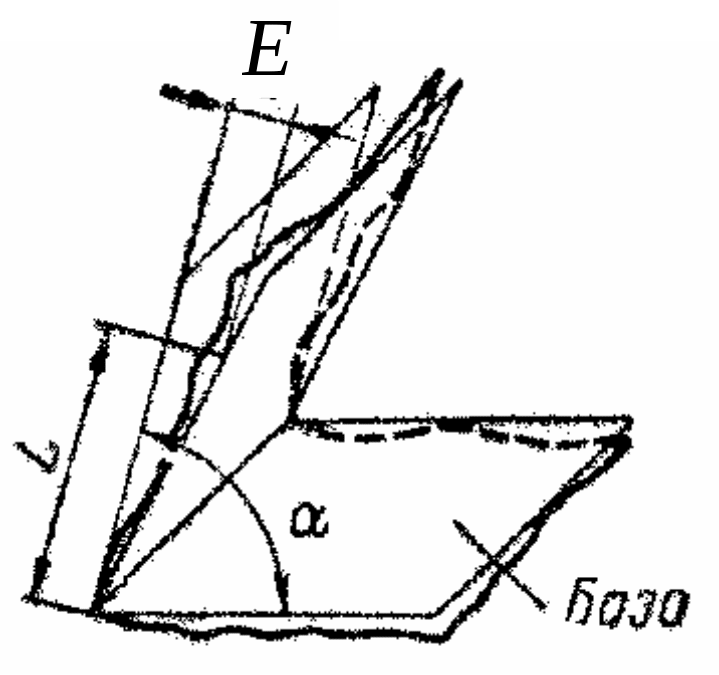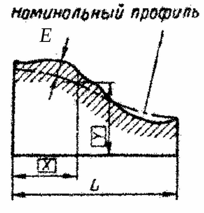 2) отклонение от прямолинейности в плоскости наибольшее расстояние Е от точек реального профиля до прилегающей прямой.