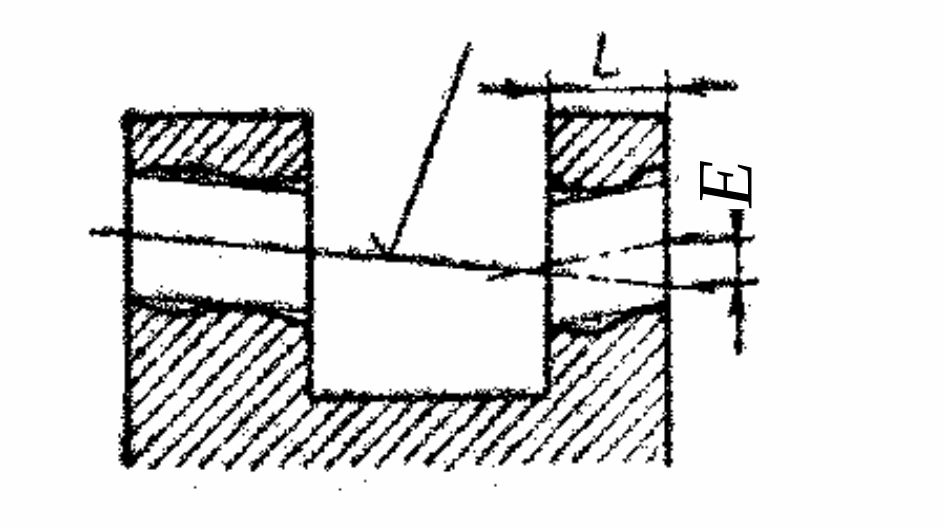 торцовое биение является результатом совместного проявления отклонения от плоскостности и отклонения от перпендикулярности относительно базовой оси. Оно равно разности Е наибольшего и наименьшего расстояния от точек всей торцовой поверхности до плоскости, перпендикулярной базовой оси.