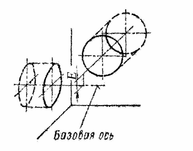 7) отклонение от пересечения осей наименьшее расстояние Е между рассматриваемой и базовой осями.