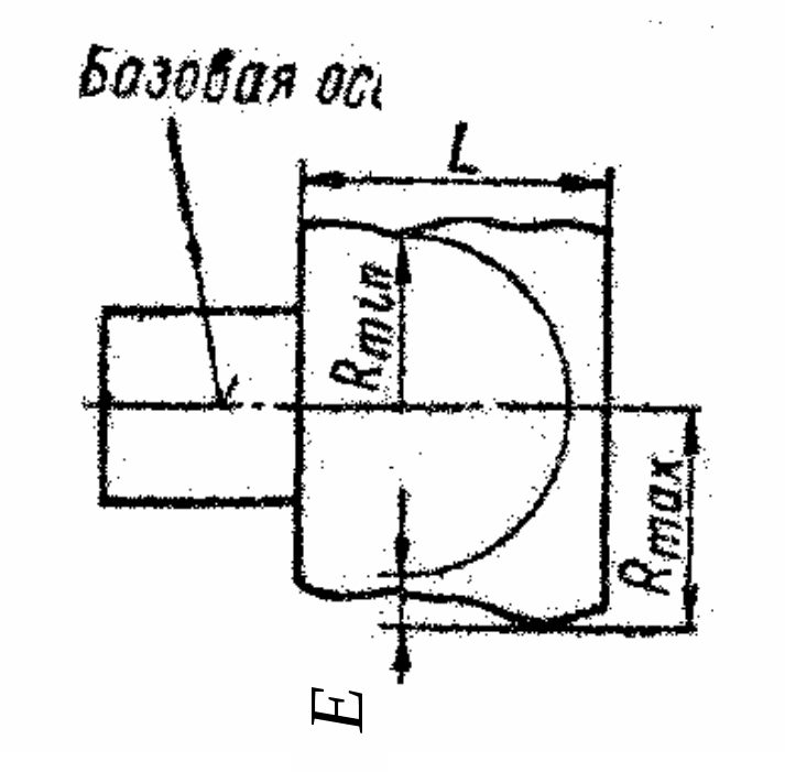 радиальное биение – результат совместного проявления отклонения от круглости рассматриваемого сечения и отклонения его центра относительно базовой оси. Оно равно разности наибольшего и наименьшего расстояний от оси до реальной поверхности.