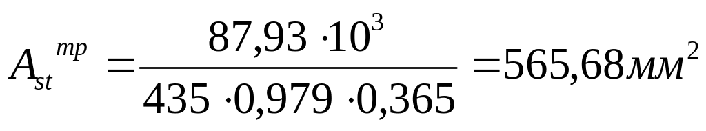 При этом необходимая площадь арматуры рассчитывается по формуле: