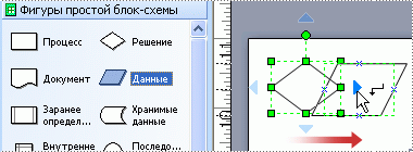 3. Утримуючи кнопку миші, перемістіть покажчик миші на блакитну стрілку, що вказує місце, куди необхідно помістити другу фігуру.