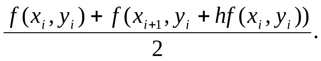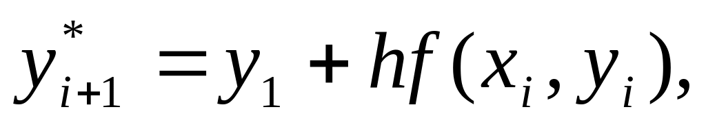 Геометрически это означает, что определяется направление интегральной кривой в исходной точке (хi уi) и во вспомогательной точке (хi+1, у*i+1), а в качестве окончательного выберем среднее из этих направлений.
