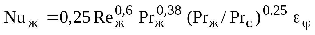 Определяющий размер – длина пластины. Индекс “ж” означает, что все теплофизические параметры, входящее в это число, берутся при температуре жидкости, индекс “с” – при температуре стенки.