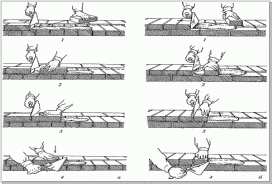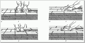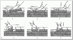 - укладка кирпичей в конструкцию (в верстовые ряды, в забутку (рис. 5.7-5.9));
