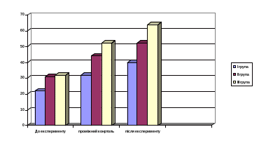 Для проведення експерименту були сформовані три групи школярів: I група — по 10 дівчат і юнаків віком 16 — 17 років, які займалися за звичайною програмою (контрольна група);