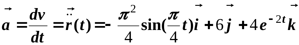 Розв’язок. Послідовно знайдемо першу та другу похідні закону руху за часом: