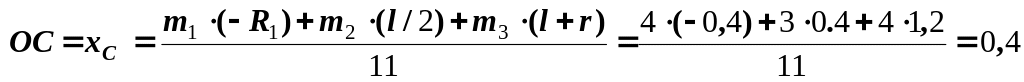 Щоб підрахувати відстань ОС скористуємось визначенням центру мас