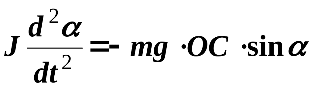 Цей момент намагається повернути тіло навколо точки підвісу до положення рівноваги (проти кута відхилення ). Таким чином, основне рівняння обертального руху може бути записано в вигляді:
