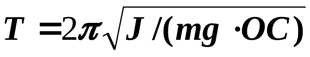 Визначимо необхідні дані для розрахунків кругової частоти (періоду) коливань: масу маятника m; відстань ОС між віссю обертання (точкою закріплення) та центром маси і момент інерції тіла J відносно осі обертання.
