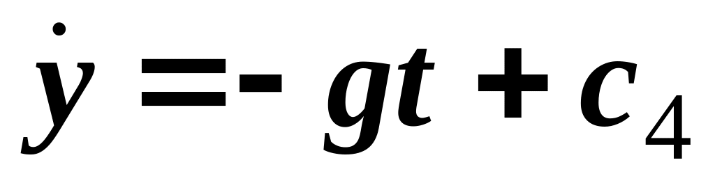 Далі розглянемо рух тіла від точки до точки падіння . На цій ділянці діє лише сила тяжіння тому диференціальне рівняння руху має вид